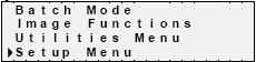 To access the Set Up menu, press the down arrow until the arrow is besides the Setup Menu option of the main menu.