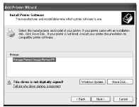 • In the next window Name the Printer (if asked) and if you want the printer to be your default printer.