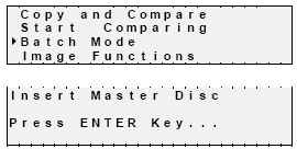 To duplicate discs using Batch Mode, the steps are as follows: • Place as many blank discs as you may require, into the input bin, starting with BIN 1 first. • Place your original CD to be copied (master disc) on top of the stack of blank discs. • From the main operating screen depicted below, select Batch Mode: