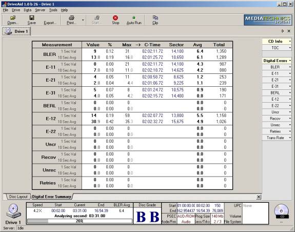 After starting your test - the test run screen will appear in the Test Status Area and the drive status box on the lower left will monitor the progress of this test.