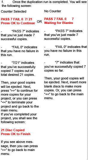 NOTE: If you happen to have any failed discs (bad copy), the failed disc(s) will not be ejected automatically. You need to manually eject them and throw them away.