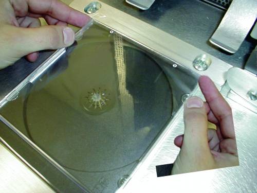 Step 7. Lay case flat on table within sliding channel. Make sure film lays flat over top edge, and slide right to heater block.