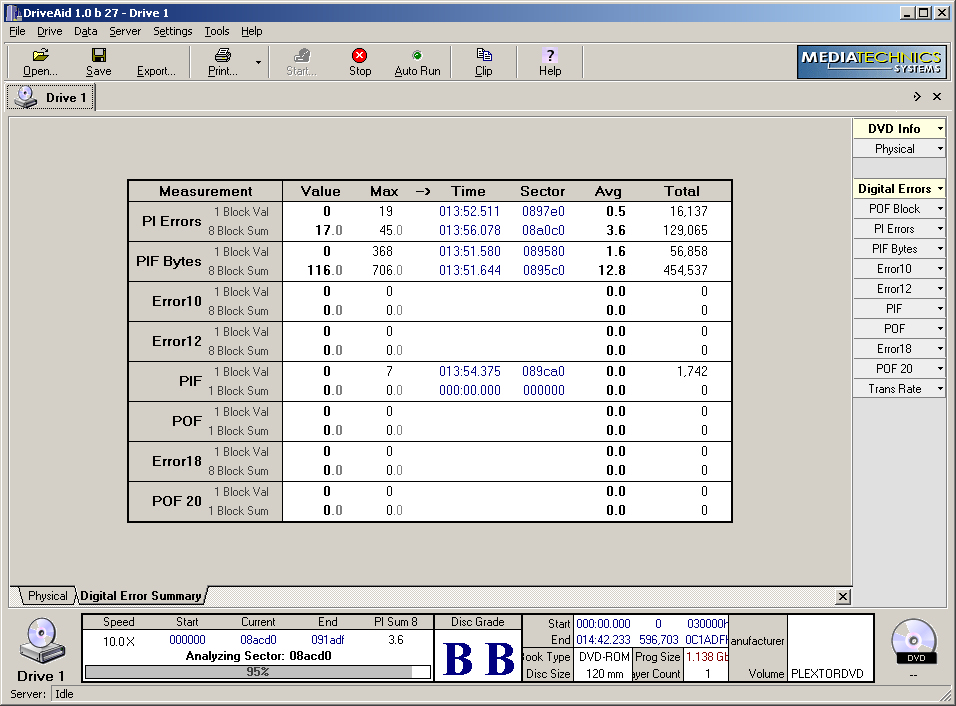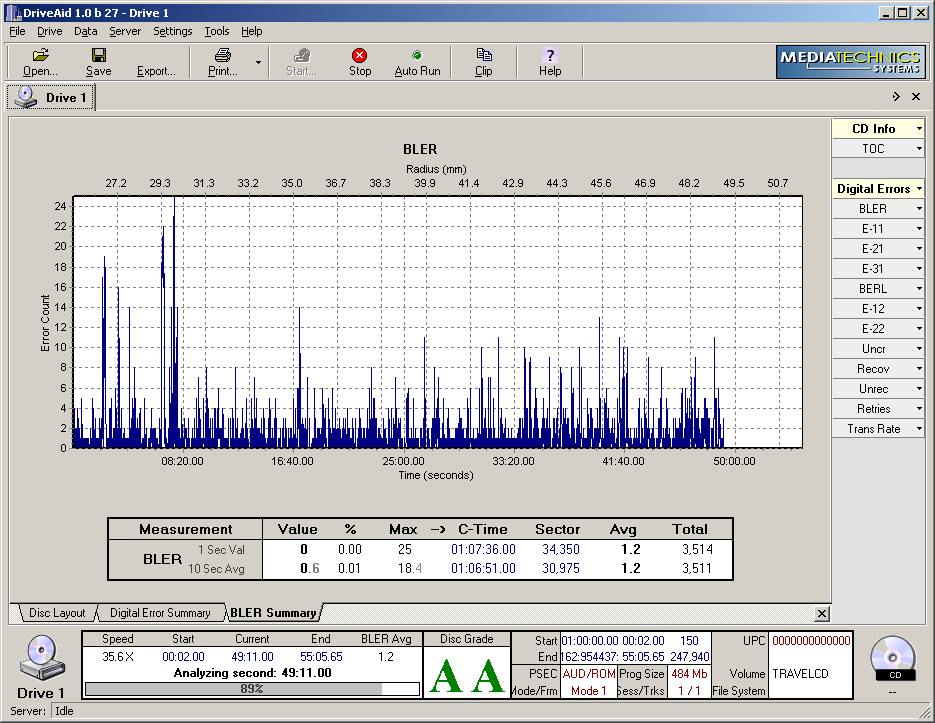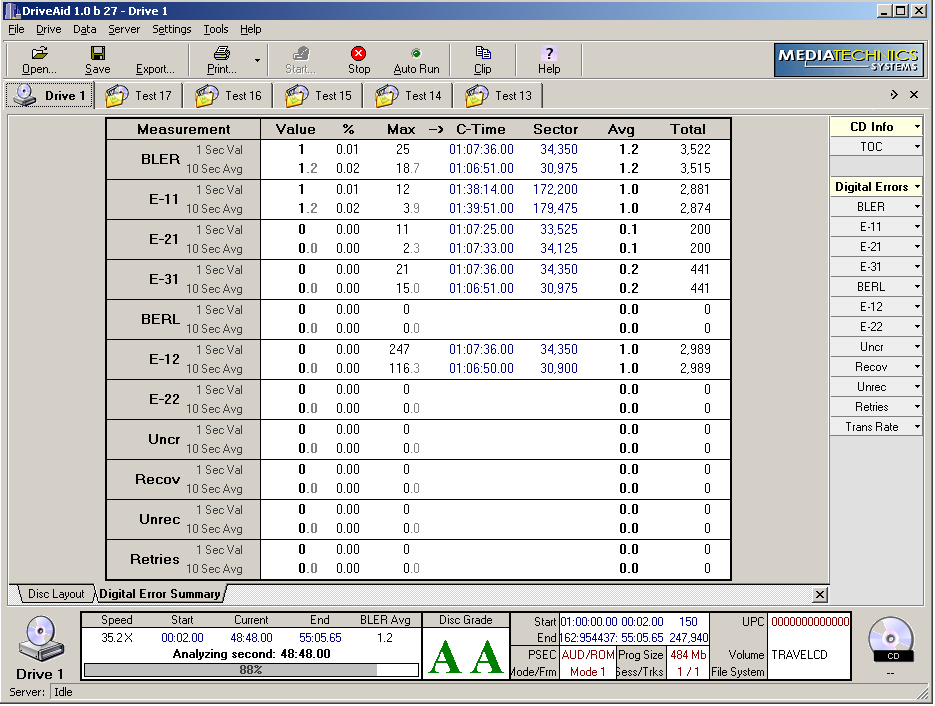 Analyze CD, CD-R, DVD, DVD-ROM, DVD-R/W and DVD+R/W written or blank media This instrument is designed to provide a fast, accurate, cost effective measure of compact disc quality! It is designed to help bridge the gap between compact disc standards and consumer player compatibility. It provides a relative measure of disc quality at multiple chosen playback speeds to help the user determine product "playability".Validate Written Media Quality on just about any type of optical disc.